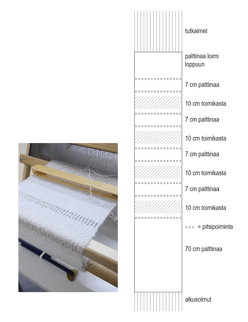 Huivissa on palttinan lisäksi toimikasraitoja ja pitsipoimintaraitoja.